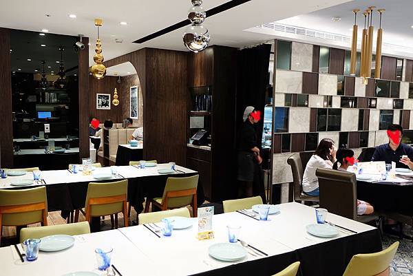 餐廳內裝潢以黑白磚及線條構成,非常俐落大方