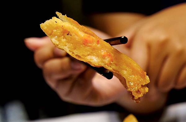 將蝦子剁碎至泥後,在使用春捲皮包覆起來後,油炸至金黃色澤,