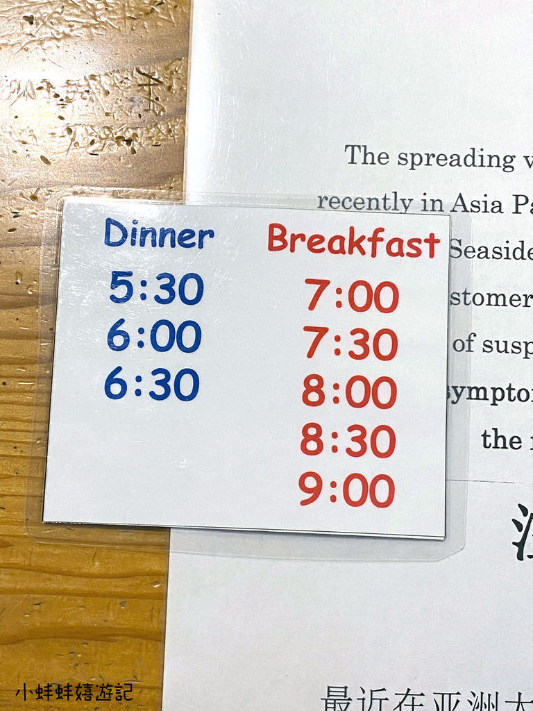 飯店人員會詢問晚餐及早餐預計何時用餐,